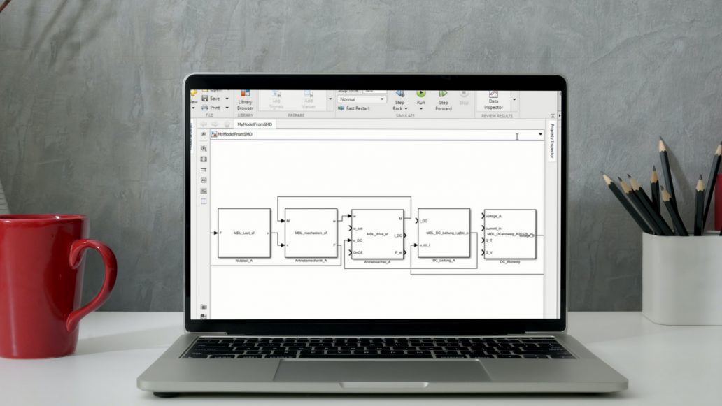 Die SMD wird mittels eines Algorithmus auf Basis der Maschinentopologie erstellt und enthält alle Port-, Verbindungs- und Parameterinformationen des Modells. Die SMD kann also als Zwischenformat im Kontext des Digitalen Zwillings und dynamischen Systemmodellen gesehen werden. Anschließend kann diese zur Generierung eines dynamischen Modells innerhalb eines Simulations-Tools genutzt werden. Bspw. können dann Anlagentopologien energetisch bewertet und Regelparameter optimiert werden.