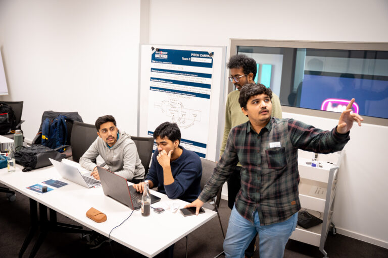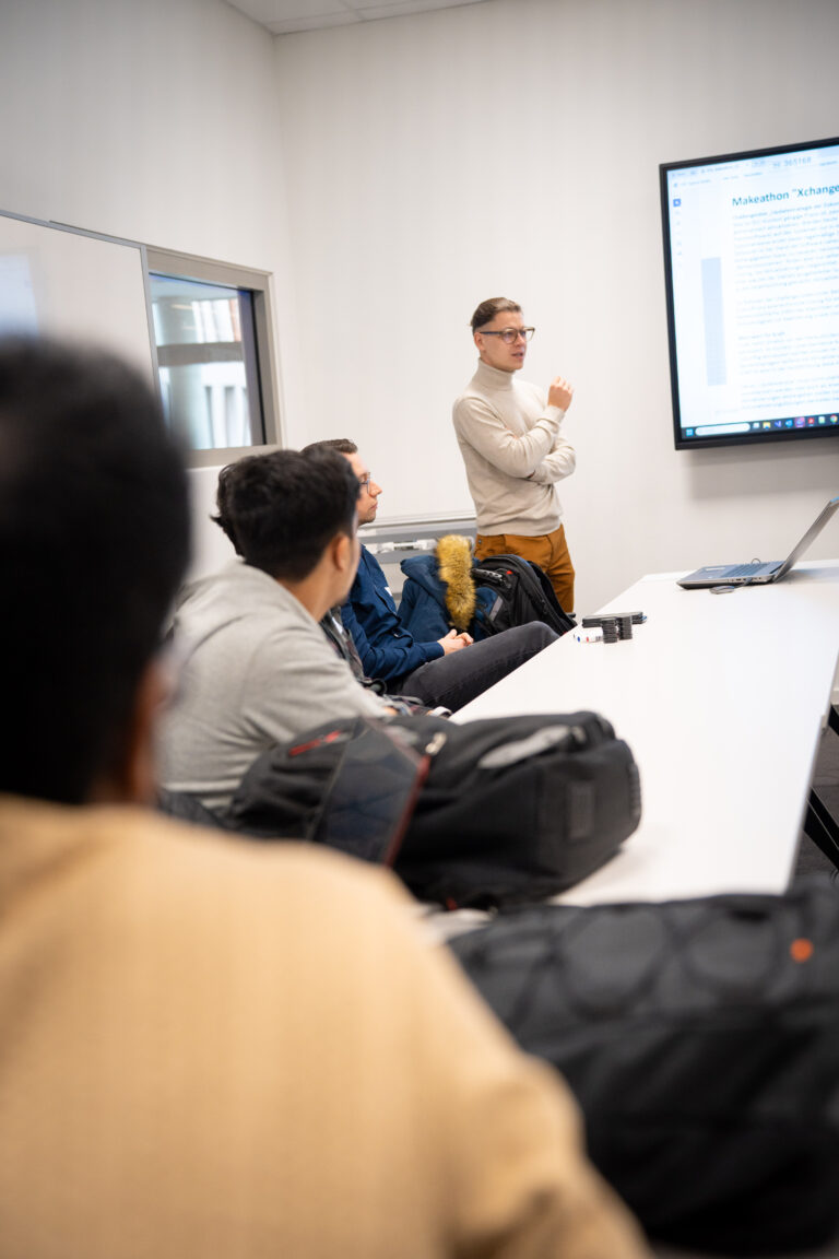 Der Makeathon fand im IoT Xperience Center an der Zukunftsmeile 2 in Paderborn statt. Am ersten Tag standen das gemeinsame Verständnis der Problemstellungen und die Entwicklung erster Lösungsideen im Mittelpunkt. Nach einer Einführung in die Challenges starteten die Teams in die Arbeitsphasen, sammelten Ideen und strukturierten die Aufgaben. Am Nachmittag stellten sie ihre Zwischenstände in kurzen Mid Pitches vor und erhielten direktes Feedback von den Challenge Ownern.