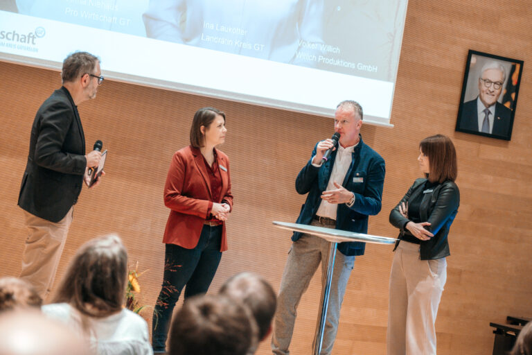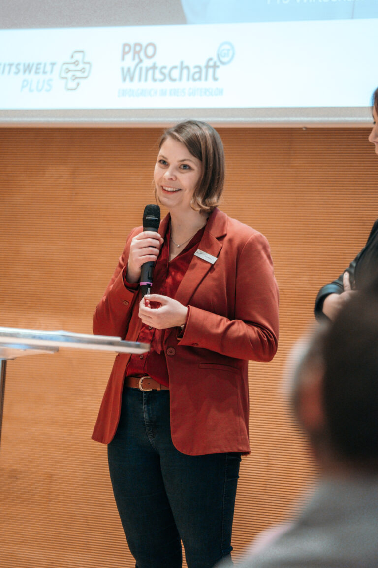 Wie angespannt die Lage in vielen Unternehmen ist, erlebt Anna Niehaus täglich. Sie ist Geschäftsführerin der pro Wirtschaft GT und spricht mit zahlreichen mittelständischen Betrieben im Kreis Gütersloh. Die Ausgangslage: hoher wirtschaftlicher Druck trifft auf große Aufgaben zur Entwicklung digitaler und nachhaltiger Prozesse und Produkte bei gleichzeitig knappen Ressourcen.