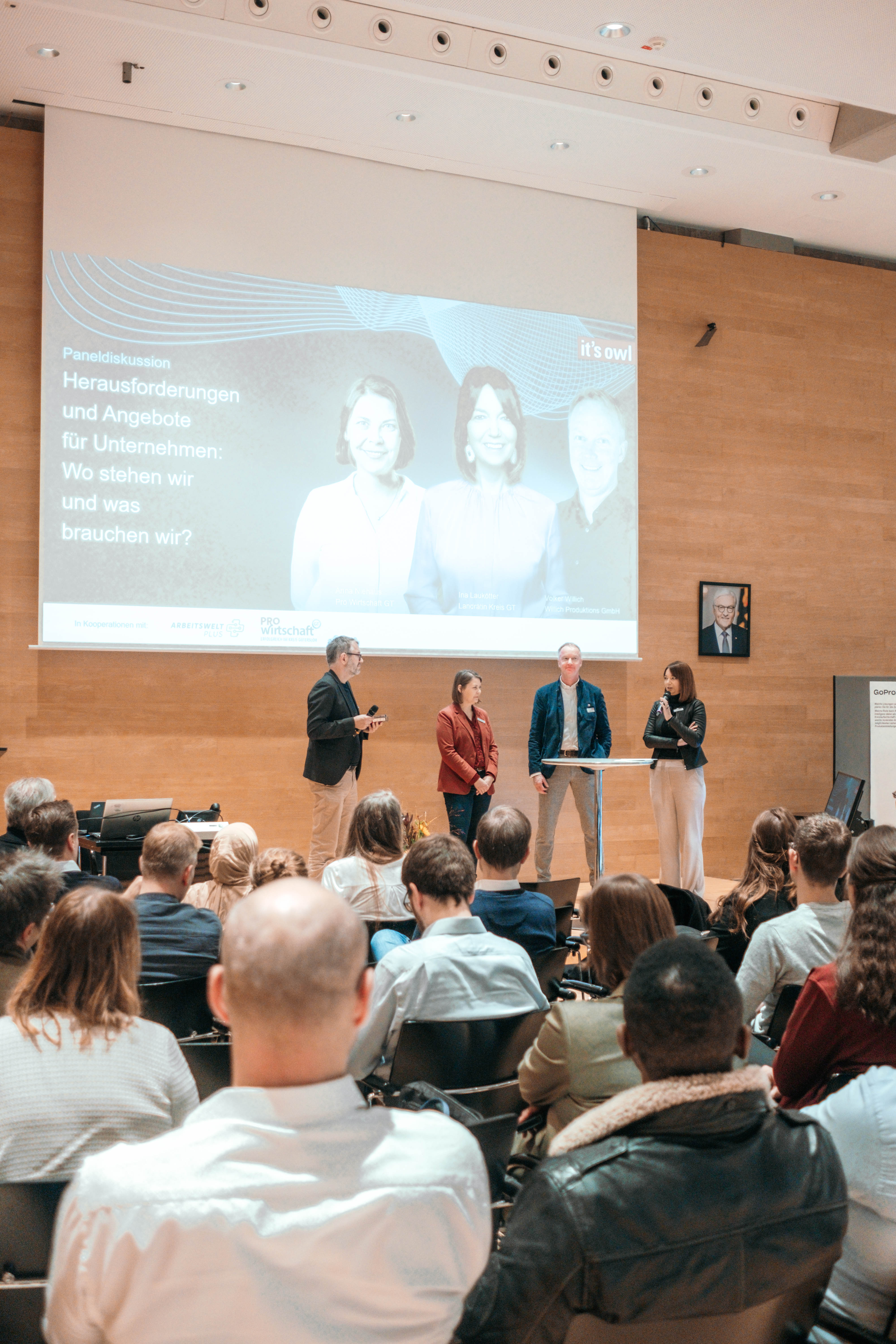 Wie angespannt die Lage in vielen Unternehmen ist, erlebt Anna Niehaus täglich. Sie ist Geschäftsführerin der pro Wirtschaft GT und spricht mit zahlreichen mittelständischen Betrieben im Kreis Gütersloh. Die Ausgangslage: hoher wirtschaftlicher Druck trifft auf große Aufgaben zur Entwicklung digitaler und nachhaltiger Prozesse und Produkte bei gleichzeitig knappen Ressourcen.