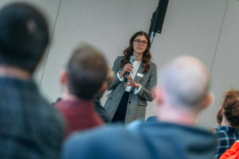 In kurzen Pitches stellten die Teams die Ergebnisse ihrer Arbeit vor. Dabei wurde deutlich, wie stark die Projekte auf die Transformation der Industrie einzahlen.