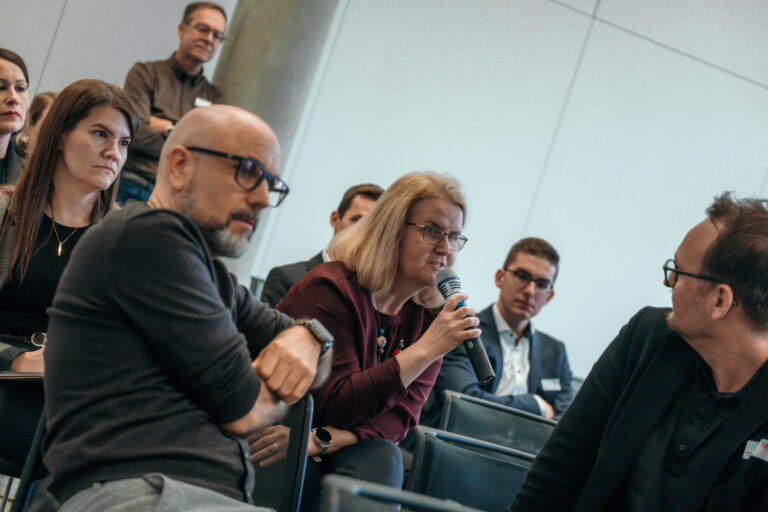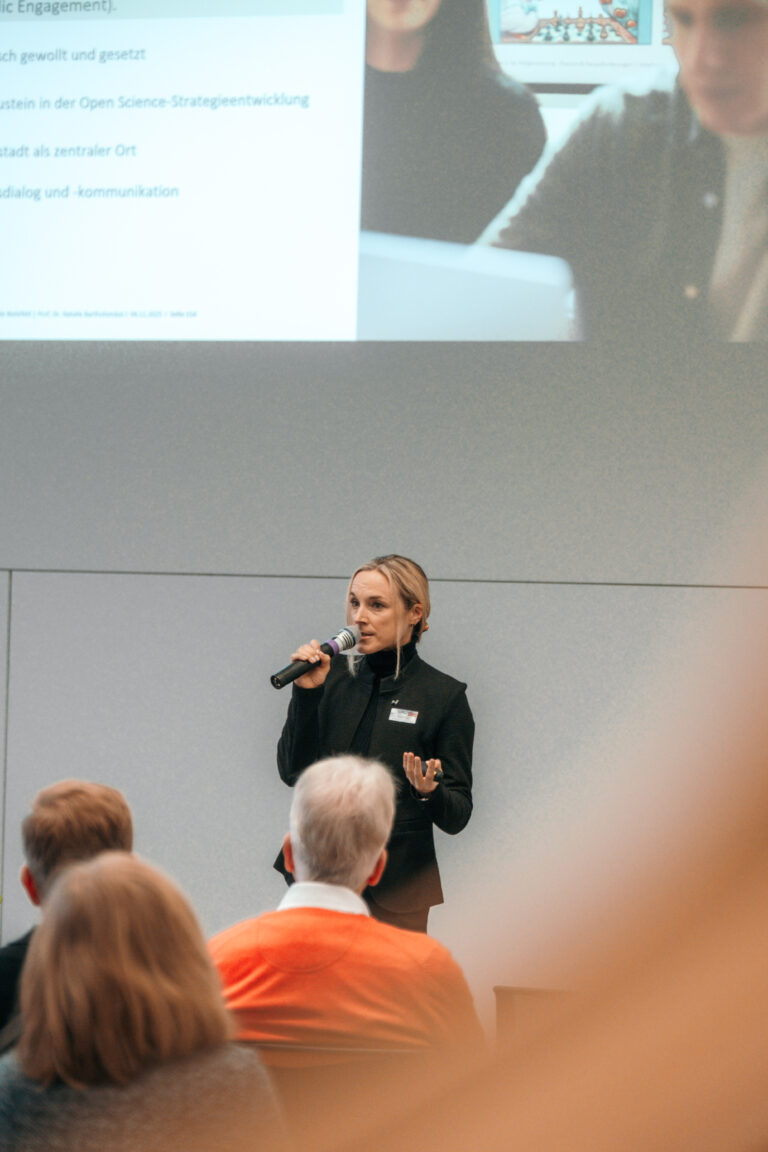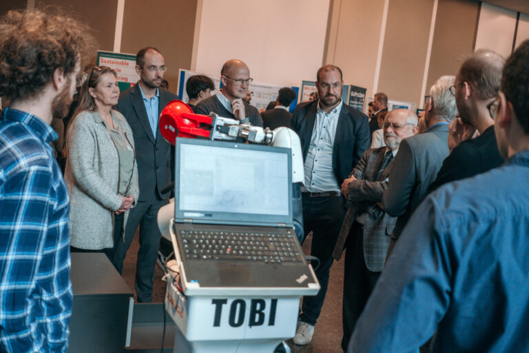 Neben den Präsentationen konnten die Gäste an den Projektständen mit den Entwickler:innen ins Gespräch kommen und Prototypen live erleben.