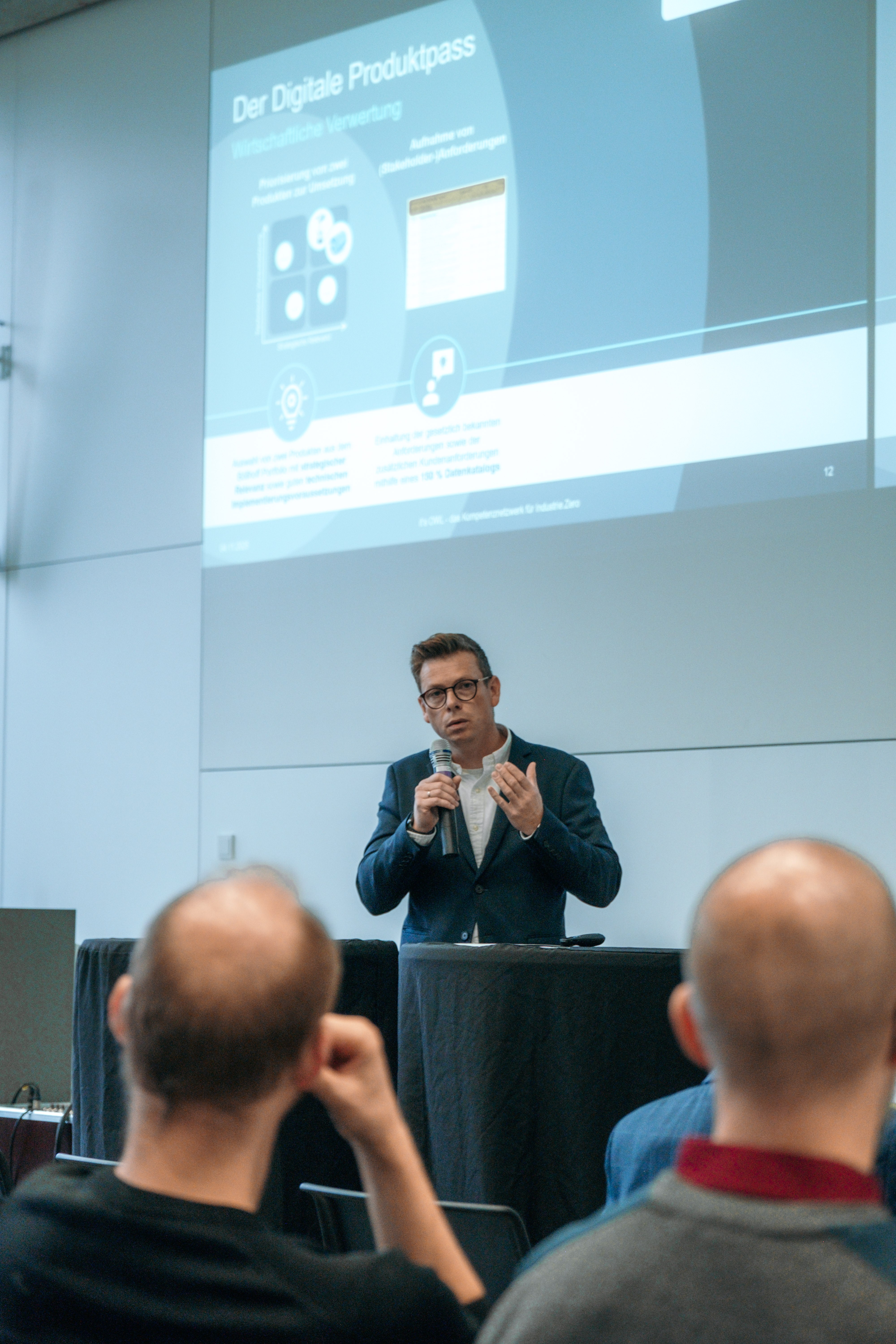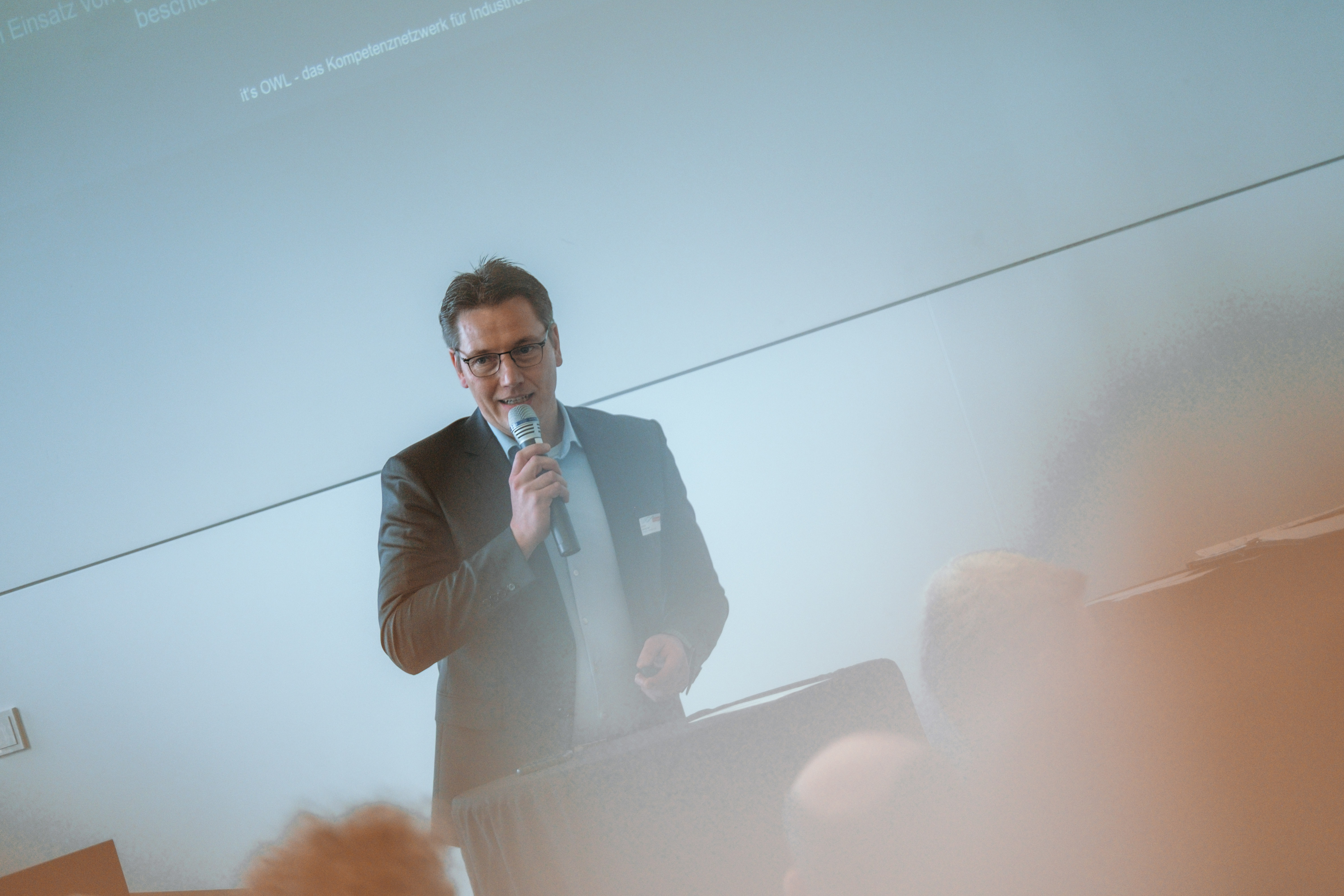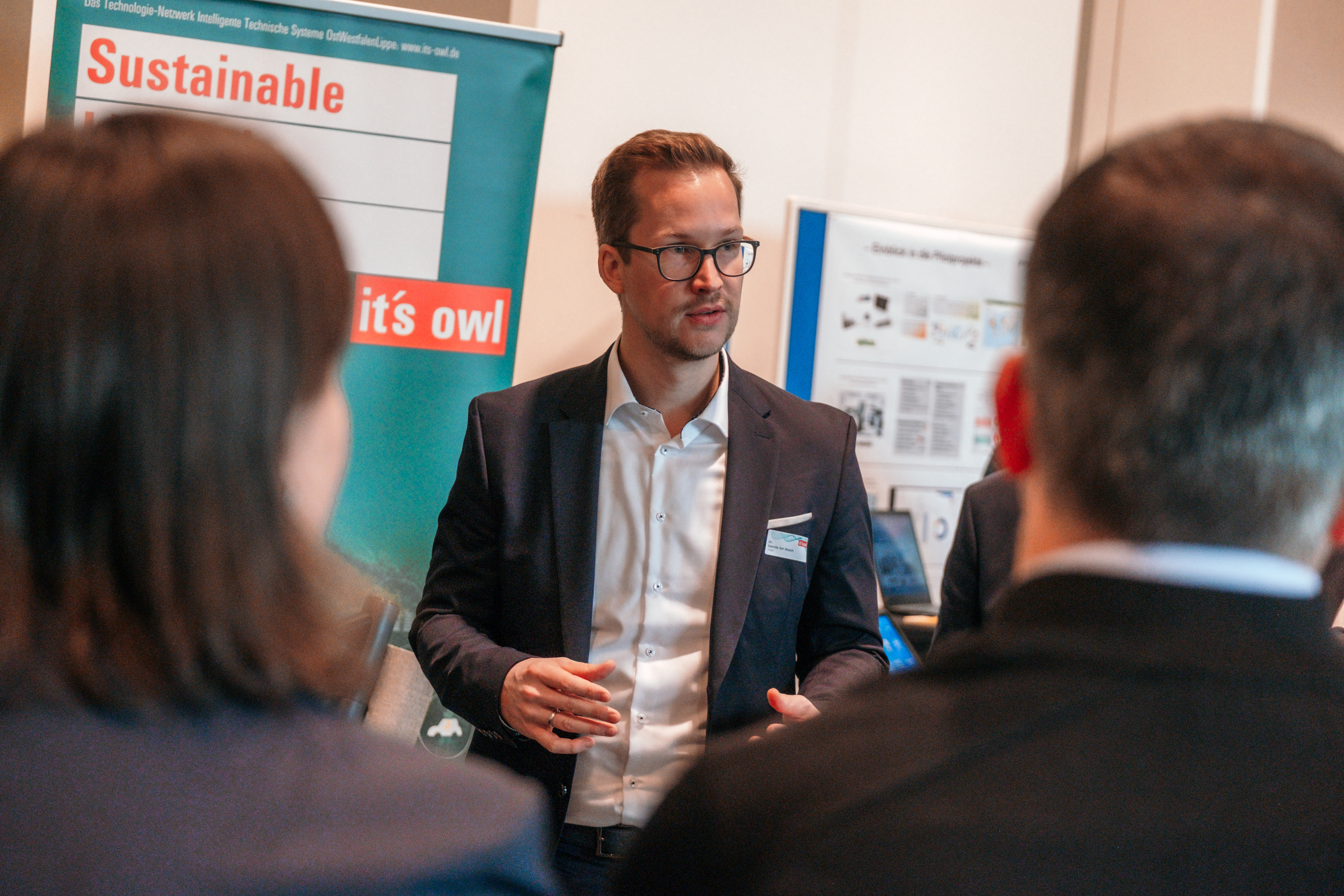 Nach der Begrüßung durch Günter Korder, Geschäftsführer von it’s OWL, und Prof. Natalie Bartholomäus, Vizepräsidentin für Transfer & gesellschaftliche Wirkung an der Hochschule Bielefeld, gaben die Projektteams Einblicke in ihre Entwicklungen – von KI-basierter Sicherheit für IoT-Systeme bis hin zu datenbasiertem Produktmanagement.