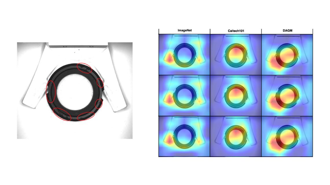 Abbildung 2 macht das Prinzip greifbar. In dem Beispiel soll ein Dichtring vor der Zuführung im Montageprozess automatisiert auf Fehlstellen geprüft werden. Ein Netz aus der „ImageNet“-Familie liefert auf Testdaten zunächst die besten Klassifikationsergebnisse. ImageNet ist eine bekannte Bilddatenbank, auf der viele Modelle für die Bildverarbeitung trainiert werden, etwa sogenannte Convolutional Neural Networks (CNNs). Diese Netzarchitektur eignet sich besonders gut für Bilder.